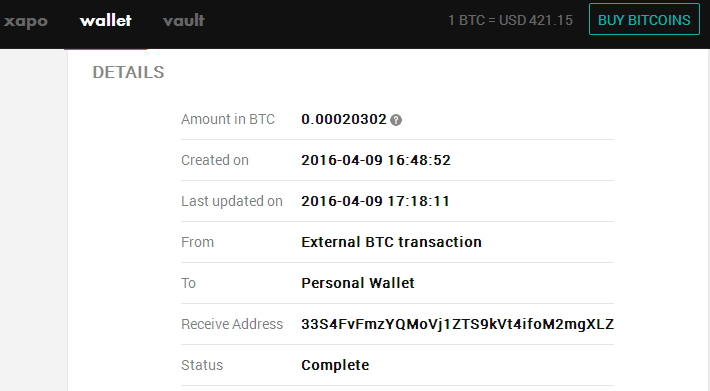 o 10min sa suma objavila v mojej Xapo peňaženke.